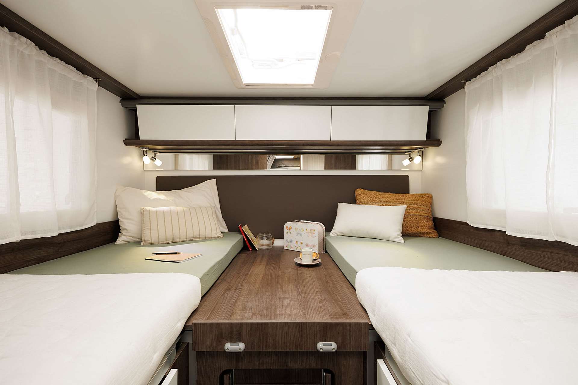 - Un amplio habitáculo te ofrece en la parte trasera una cama King Size de más de 2 metros o si lo prefieres dos camas separadas.